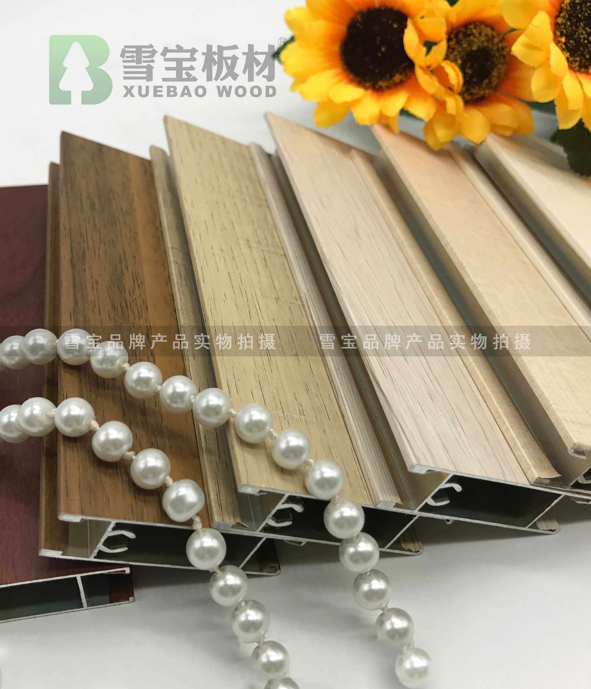 移门金属辅材-钛镁合金高强度材质(移门上方)原材料为纯铝水棒,也叫钛镁合金高强度材质,符合6063号国标,产品质量要求达到出口欧美标准。厚度达到1.2厚,不易断裂,不易氧化。表面花色为进口环保油墨辊印刷,与雪宝生态板系列款式同色系,花纹一致,整体装饰效果佳。防水性能好,易清洁,可使用在卫生间、厨房和阳台等地方。装饰效果与实木边框效果相同,减少了由于色差等因素而造成的缺憾。(示例图中花色分别为:万紫千红、金丝胡桃、锯木有痕、千思慕雪、典雅布纹、暖白)